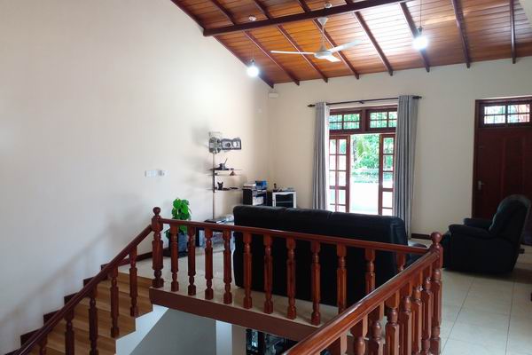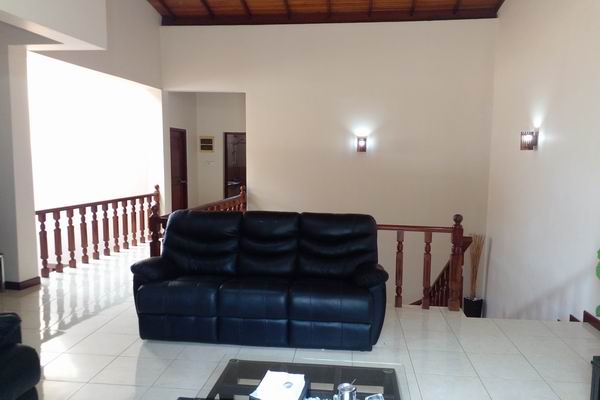 The house is fully tiled, has single phase electricity supply with three air conditioners and fitted ceiling fans for most of the areas, has pipe borne water supply with hot water supply with a water sump and an overhead tank for storage, all of the doors, windows and the pantry cupboards are made using quality wood, the sitting, dinning and the bed rooms are fitted with imported light fittings, all of the bathrooms are fitted with standard imported sanitary ware, the upper floor consists of high roofed polished wooden ceiling, is secured with CCTV cameras and is solidly built using quality material.