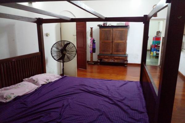 It is a single storied spacious bungalow with a small upper floor consisting of a hall & a room, the ground floor consists of a verandah area, a spacious sitting & dining room, five bed rooms including a spacious master bed room, three attached bathroom, another common (semi attached) bathroom, a large kitchen area, two store rooms & a toilet outside.