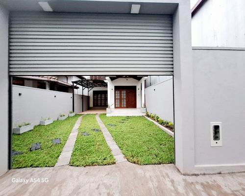 It is an architect designed luxury and spacious two storied house facing two roadways (the main road and a private road on one side), the ground floor consists of a spacious sitting and dinning room with a courtyard, one bed room, a visitors bathroom, an elegant pantry area with fitted cupboards and a separate wet kitchen.
