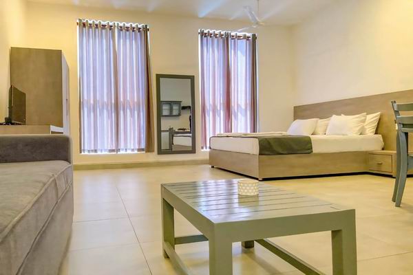 It consists of nineteen studio type apts (aprox 400 sq.ft each), each consisting of an open space with an attached bathroom & a kitchenette with potential to increase the number of floors & rooms. All of the floors consists of a spacious corridor lobby area & consists of a lift connecting all of the floors.