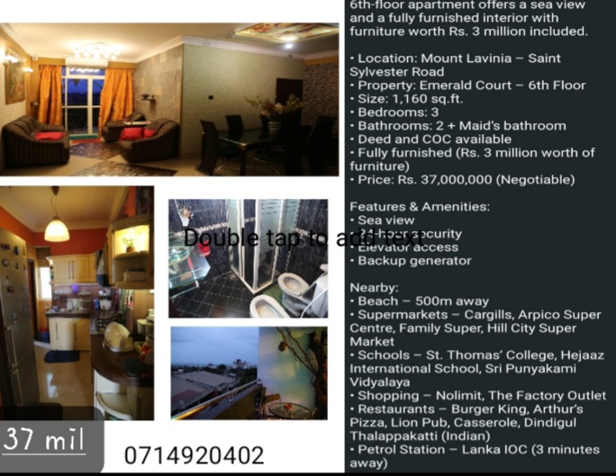 fully furnished & sea view on the 6th floor of Emerald