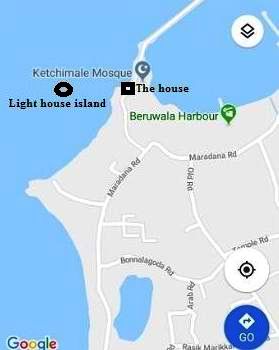 This bungalow is situated in a tranquil & peaceful,well secured convenient & scenic location bordering the beach (with a view of the Light house island) down Maradana road (between the towns of Beruwela & Aluthgama) & is situated with close proximity to supermarkets, shopping malls, schools, also close to banks, hospitals, places of worship, the post office etc,it is only about ten minutes drive to the Beruwela town center, about fifteen minutes drive to Aluthgama, about an hours drive to Colombo & close to most of the towns, along the Southern costal belt of Sri Lanka,from this location.
